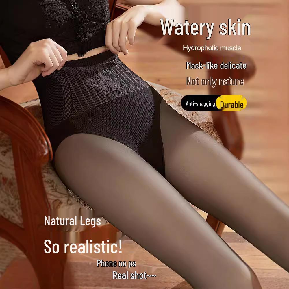 Meia-calça Preta Transparente com Forro de Fleece de Cintura Alta para Mulheres - Look Perna de Fora Outono/Inverno