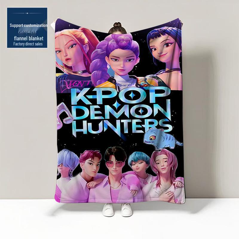 K-POP Demon Hunter Team Flannel Blanket – Custom Pattern Air Conditioning & Leg Cover Blanket