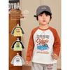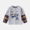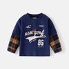 Spring and Autumn Boys' Pure Cotton Fake Two Pieces Long Sleeves T-shirt K-style Children Letters Kids Drop-Shoulder Sleeve Bottoming Shirt