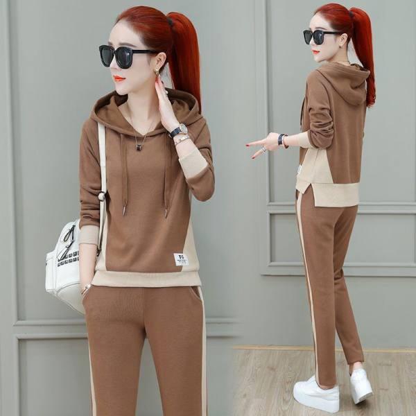 Casual Sportswear Set for Women - Spring/autumn Trendy, Loose-fitting, Fashionable Long-sleeved Hooded Pullover Set of Two Pieces