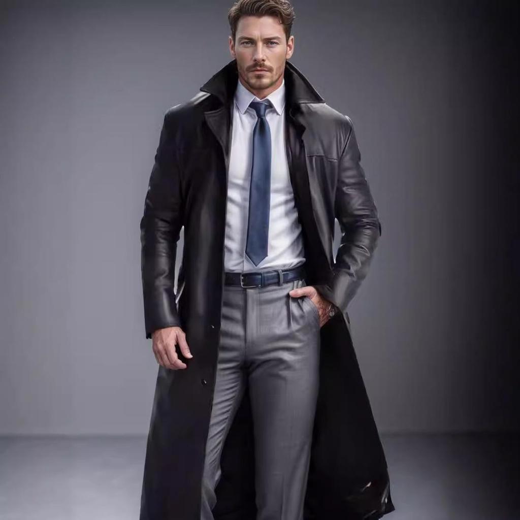 Experience timeless style and sophistication with this men's extended length PU leather jacket. Perfect for casual spring fashion, this jacket features a precisely tailored neckline for a sharp, refined look. The suit collar adds an element of elegance, making it ideal for both casual outings and more polished occasions. Designed specifically for men, this jacket combines comfort and durability with a modern edge, making it a versatile addition to any wardrobe.