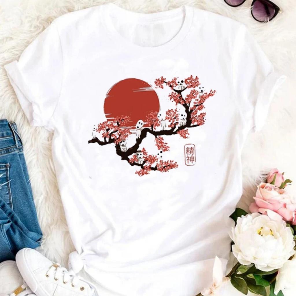 2025 New Sakura Plum Cute T-shirt Women's Summer New White Casual Short Sleeve T-shirt Women's Kawaii 90s girls Street T-shirt.