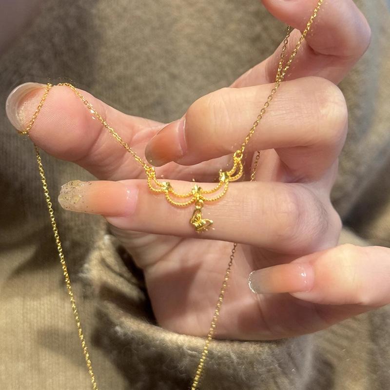 Misty Rain French Yellow Gold Hollow Silk Butterfly Necklace Exquisite Advanced Neck Chain Fashion Temperament Factory Direct Sales