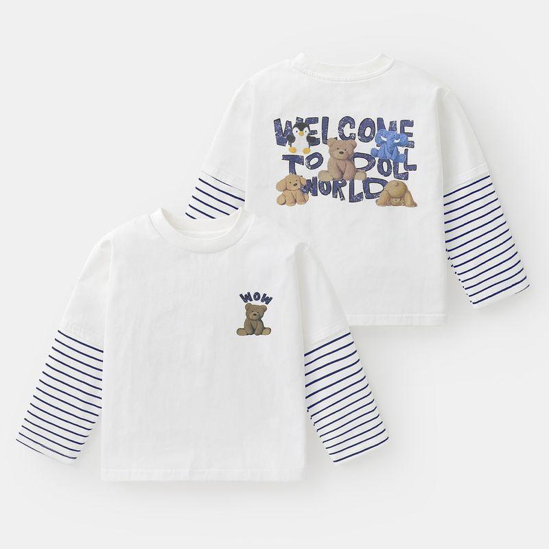 Right-Hand European Style Boys' Long-Sleeved T-Shirt with Front and Back Print, Faux Two-Piece Cartoon Top, Baby 25 Autumn New Children's Clothing
