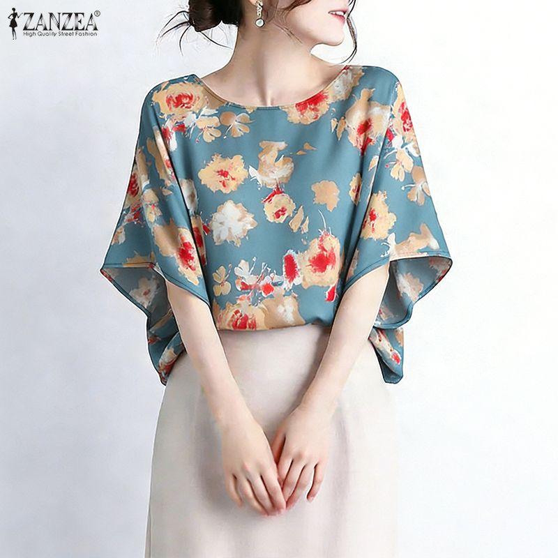 ZANZEA Women Casual Round Neck Half Sleeve Loose Floral Blouse