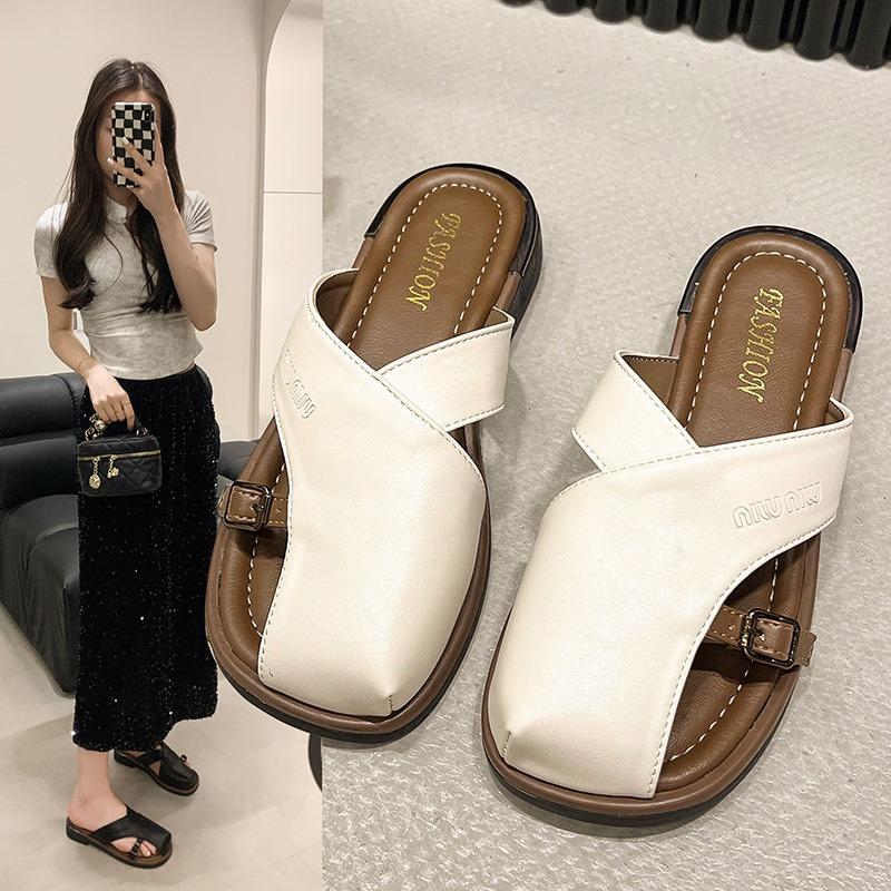 Thick-bottomed cool slippers niche design bag head slippers women's outer wear Xia Xin fashion retro one pedal