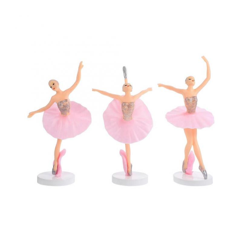 Elegant Ballerina Statue Dancing Girl Figurines Home Use Pink 14.50X6.00X6.00CM 3Pcs