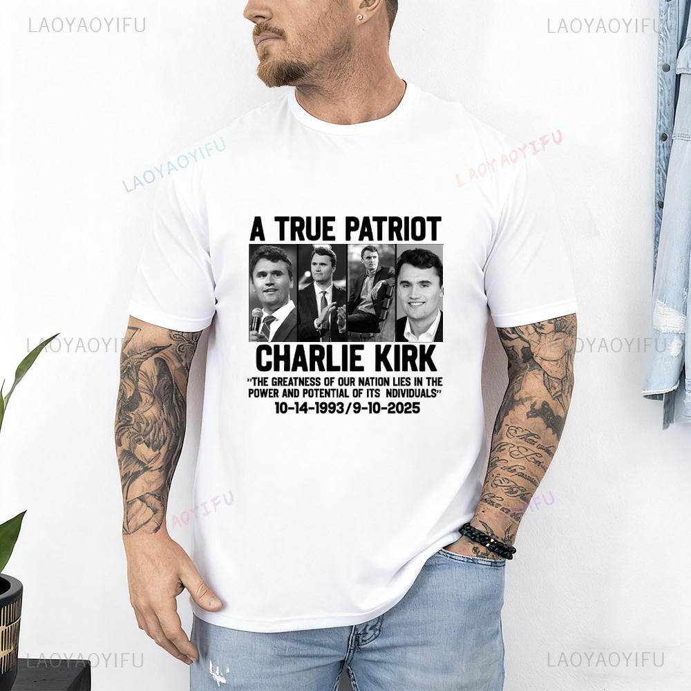 A True Patriot Charlie Kirk Shirt Rest in Peace Charlie Kirk 19932025 Thanks for The Memory Graphic T Shirts Woman Man Cotton