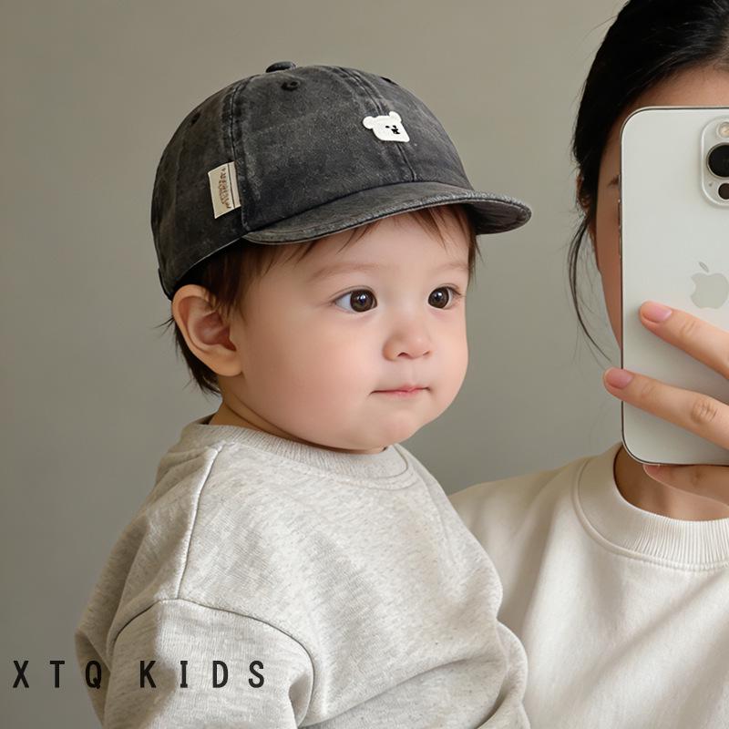 Infant Duckbill Denim Baseball Cap with Soft Brim - Adorable Bear Design Sun Hat for Babies