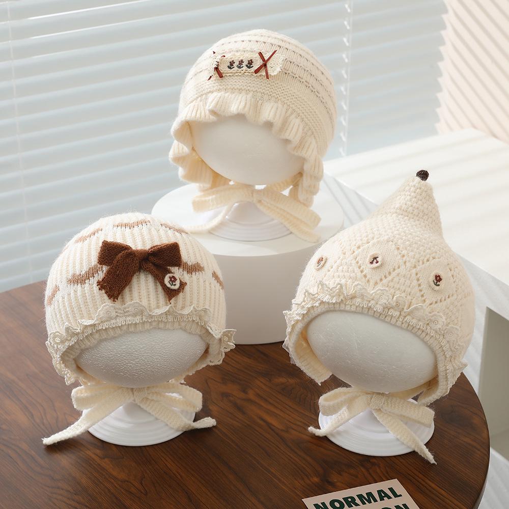 Windproof Knitted Baby Hat: Warm Wool Pointed Top with Ear Protection for Newborn Girls
