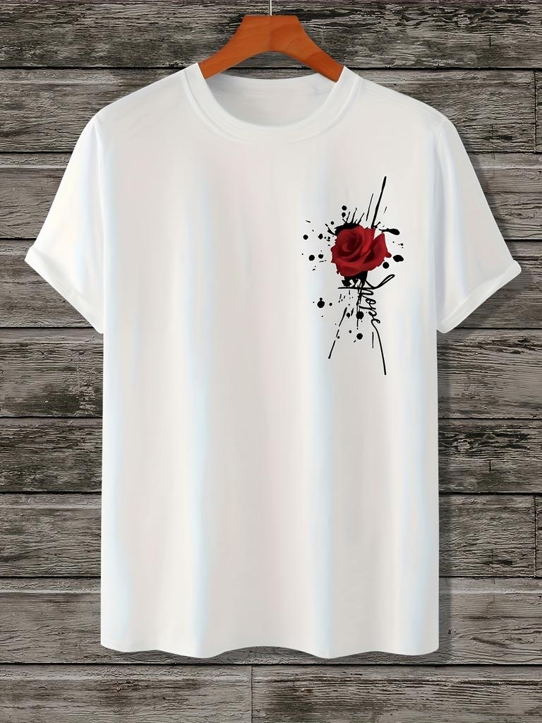 Fashion Splash Ink Rose Print 100 Cotton Men Woment Tshirt Summer Autumn Daily Outdoor Sports Party Casual Street Short Sleeve