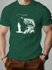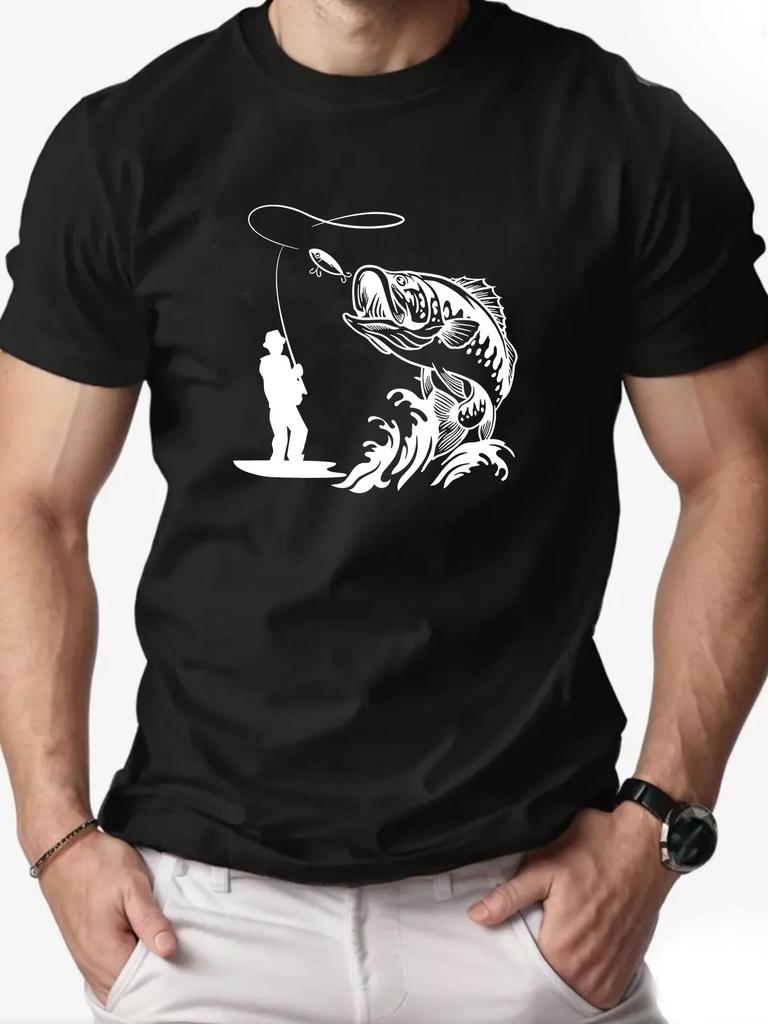 Mens Summer Large Fish Pattern Casual Roundneck Shortsleeved Soft Comfortable Breathable Cotton Fishing Enthusiast Tshirt