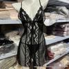 Roupa íntima sexy feminina conjunto de pijama e camisola de renda oca de luxo leve para tentação