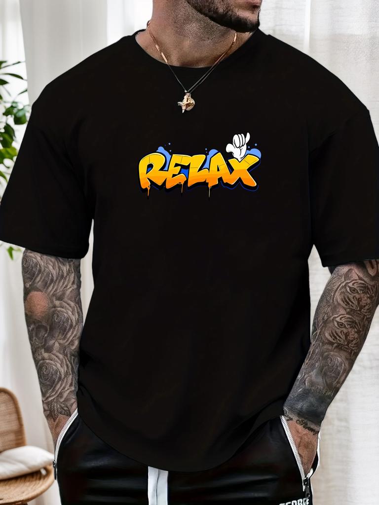 Mens Casual Tshirt Graffiti Relax Print Short Sleeve Round Neck Breathable Soft Oversized Trendy Daily Wear Tee