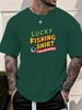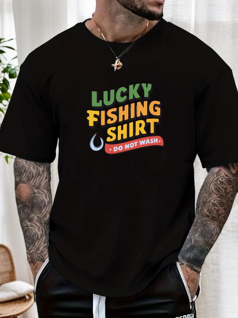 Mens Fishing Tshirt Lucky Fishing Print Short Sleeve Round Neck Breathable Soft Oversized Outdoor Daily Wear Tee
