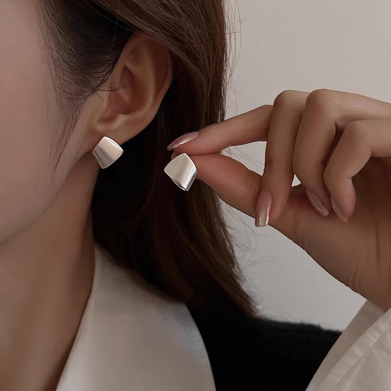 925 Silver Geometry Stud Earrings For Women Frosted Versatile Jewelry Gift Office Party Wear
