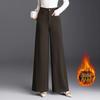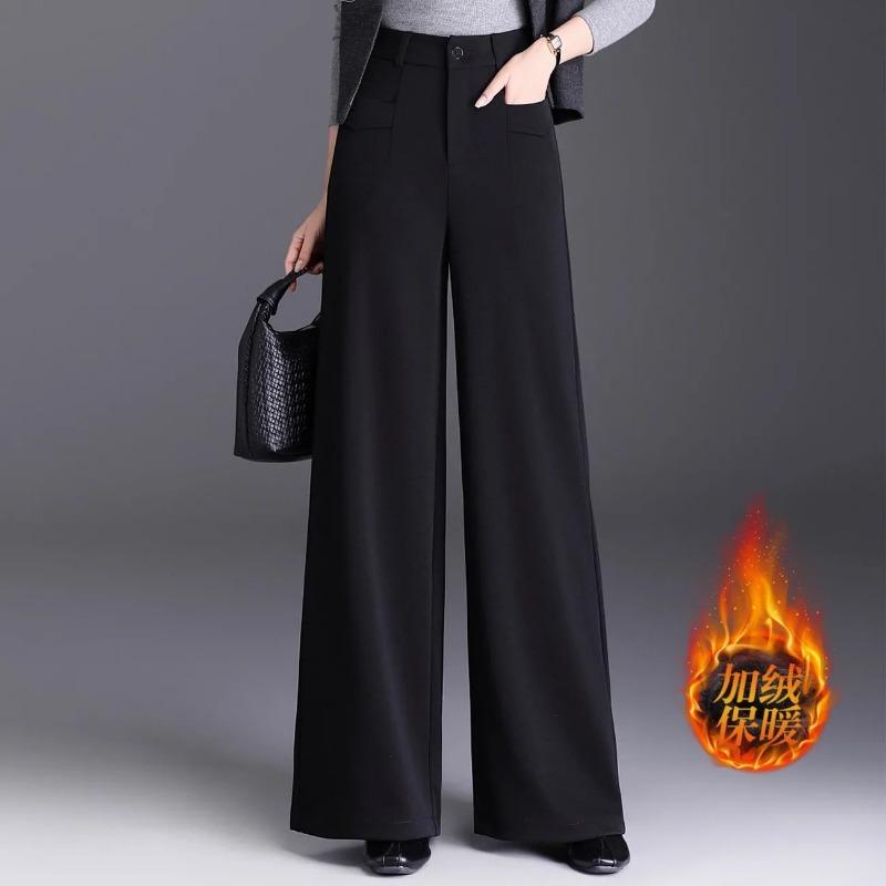 Calças Femininas Pretas de Cintura Alta com Pernas Largas e Forro de Lã Calças Casuais Quentes