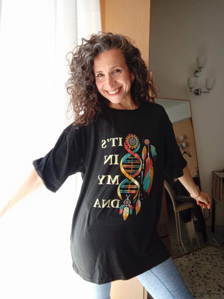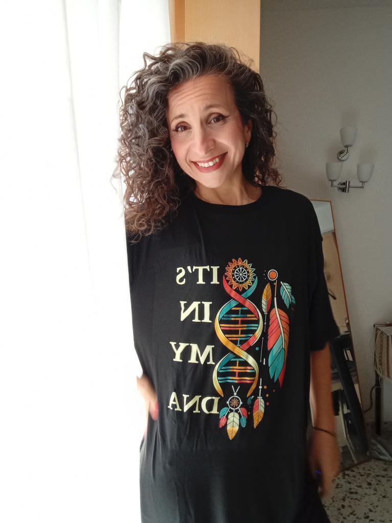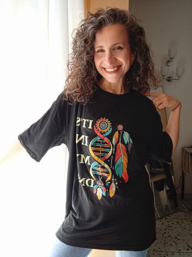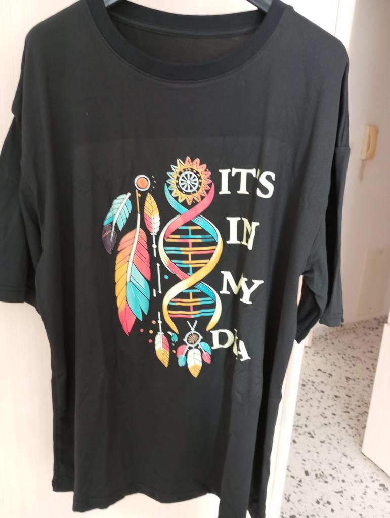 Camiseta "Está no meu DNA" – Estilo e Maciez Incríveis! ⭐⭐⭐⭐⭐ Material e Sensação ao Toque: Fiquei agradavelmente surpreendida com a qualidade desta t-shirt. Apesar de ser de poliéster, o tecido é extremamente macio ao toque, quase sedoso na pele. Não é o poliéster rígido habitual: é leve, respirável e tem uma bela caída. Uma grande vantagem é que não amassa praticamente nunca, pelo que é perfeita para usar logo após a lavagem sem necessidade de a passar a ferro.! Impressão e Design: A inscrição "It Is in my DNA" na frente é muito bem feita. A impressão é nítida, os caracteres são bem definidos e parece muito resistente às lavagens (não mostra sinais de rachar ou desbotar). O fundo preto é intenso e profundo, o que faz o slogan branco se destacar muito.. Tamanho e Caimento: Comprei um tamanho Médio e veste perfeitamente. Não é nem muito justa nem muito larga, segue bem as linhas do corpo, permanecendo ainda assim muito confortável. Se estiver entre dois tamanhos e quiser um efeito mais "oversize", recomendo escolher um tamanho acima, mas para um caimento regular, o M é certíssimo.. Conclusões: Excelente relação qualidade-preço na Joom. É uma t-shirt básica mas com um carácter forte, ideal para combinar com um par de jeans ou leggings desportivos. A expedição foi pontual e a embalagem cuidadosa. Altamente recomendada para quem procura conforto sem renunciar ao estilo! 🧬🖤