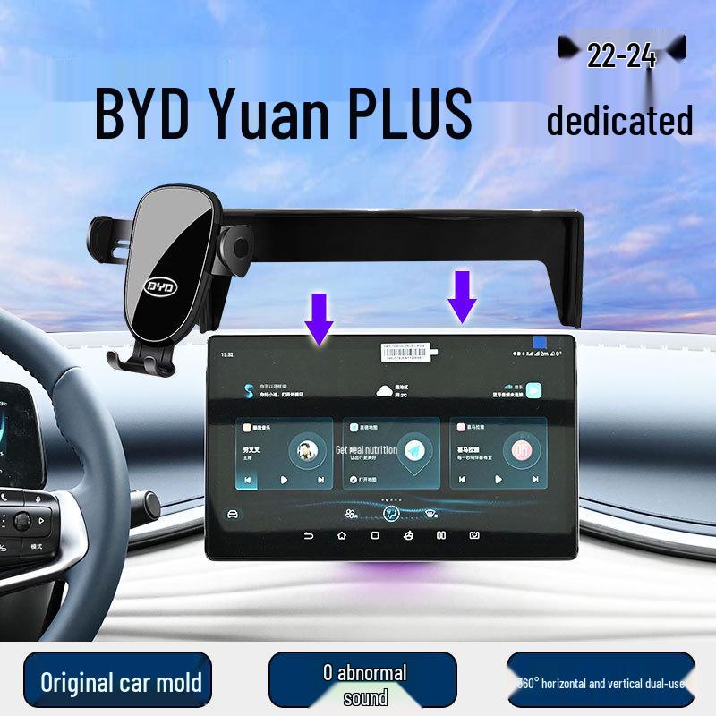 Dedicated phone holder bracket for 2022-2024 BYD Yuan PLUS models, mounts to screen.