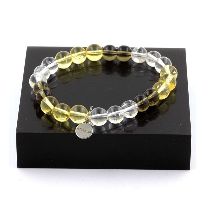 Pedras e Minerais. Pulseira Contas Quartzo + Citrino + Quartzo Fumê 8 mm. Feito na França.