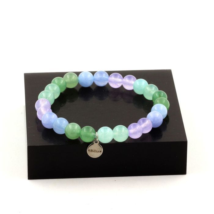 Pierres et Minéraux. Bracelet Perles Angélite + Aventurine + Aigue-Marine + Calcédoine Fabriqué en France.