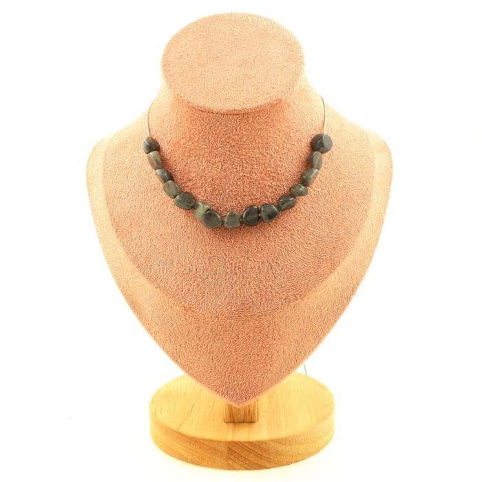 Pierres et Minéraux. Collier 15 perles Labradorite de Finlande. Chaine en acier inoxydable Collier femmes, hommes. Taille personnal