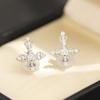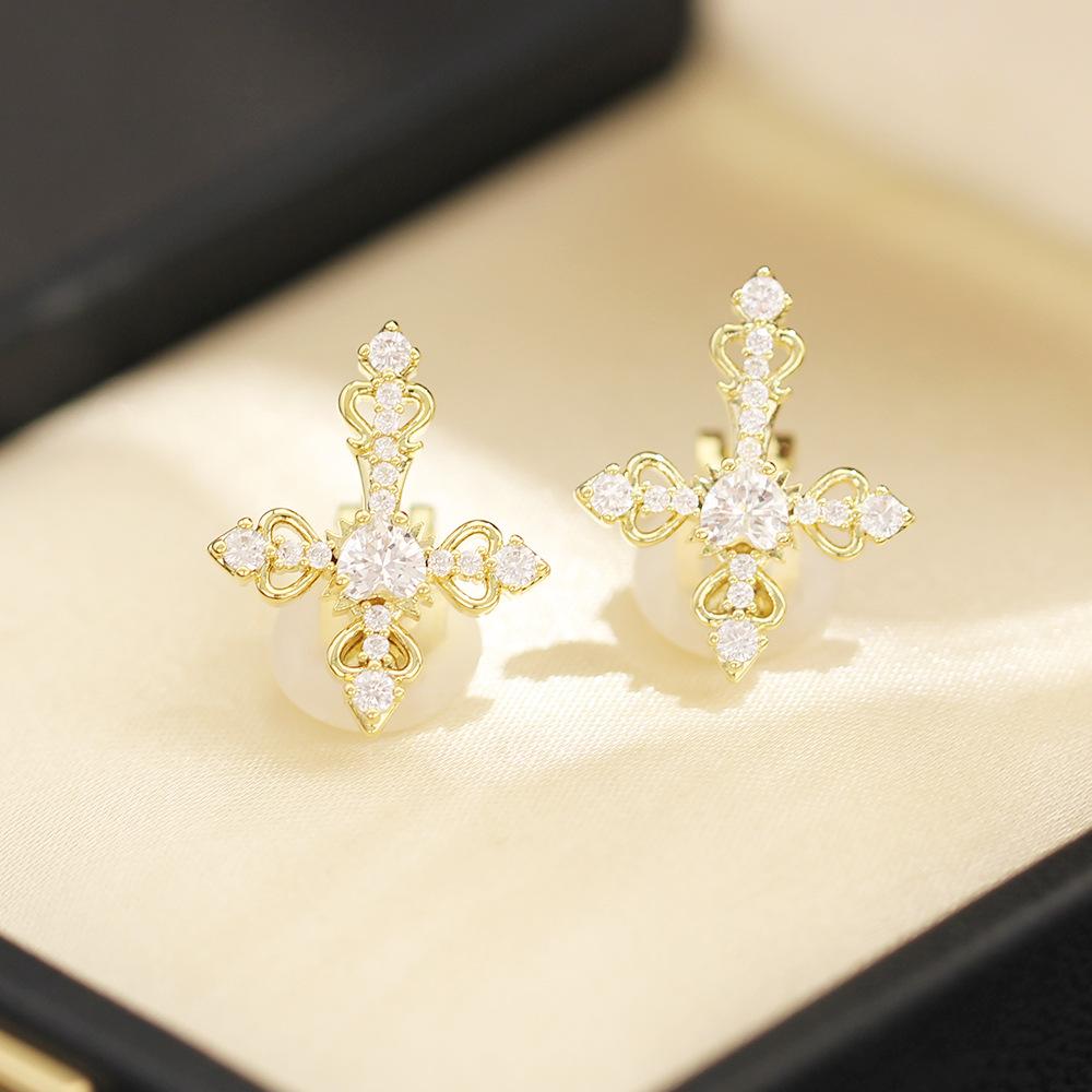 Novos brincos de cruz dourados e prateados com incrustação de pedra, de nicho europeu e americano, ear clips, brincos, presentes requintados e versáteis