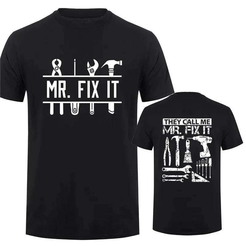 They Call Me Mr Fix It Men Printed Tshirts Handyman Dad Repairman Cotton Father TShirt Funny Graphic Back Casual Male Clothing