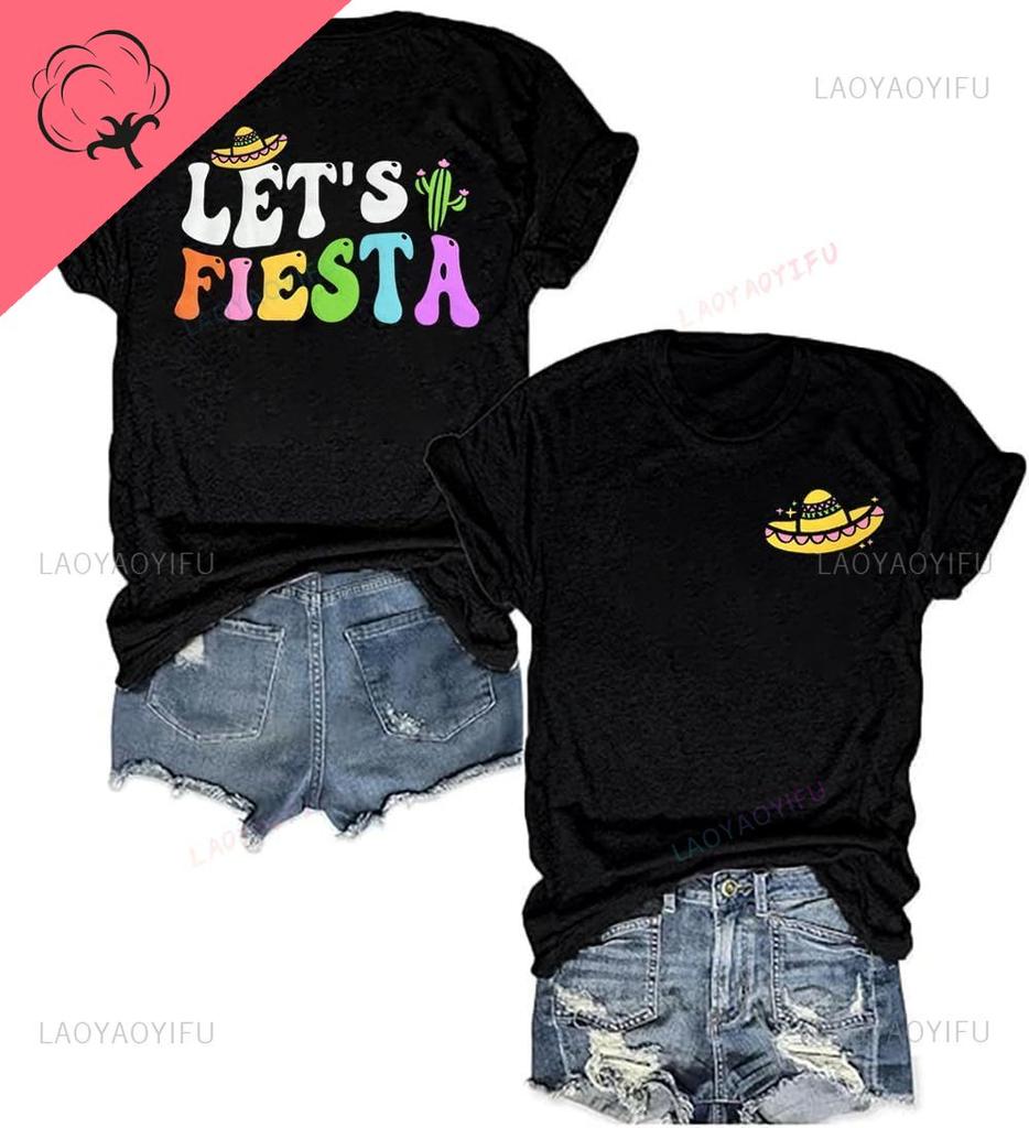Camiseta Estampada Lets Fiesta Camisas Cinco de Mayo Femininas Chip Dippin Margarita Sippin Camisetas Mexicanas Top de Férias no México