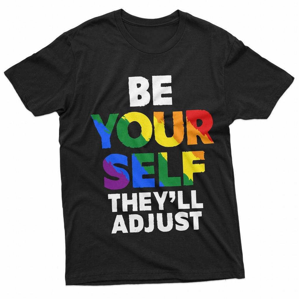 Be Yourself They Will Adjust Tshirt LGBTQ Men Women Pride Month Parade Tee Tops Unisex Letters Slogan Printed Short Sleeve