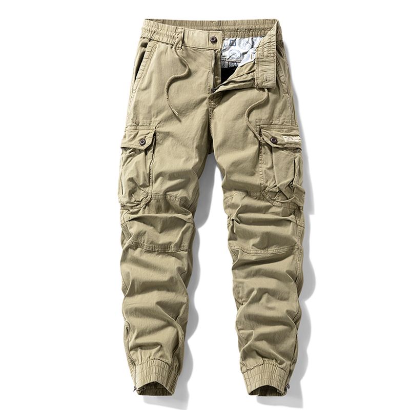 Men's Casual Pants for Spring and Autumn, American-Style Loose Cargo Pants with Multiple Pockets and Jogger Cuffs, Export Surplus with Tags Removed