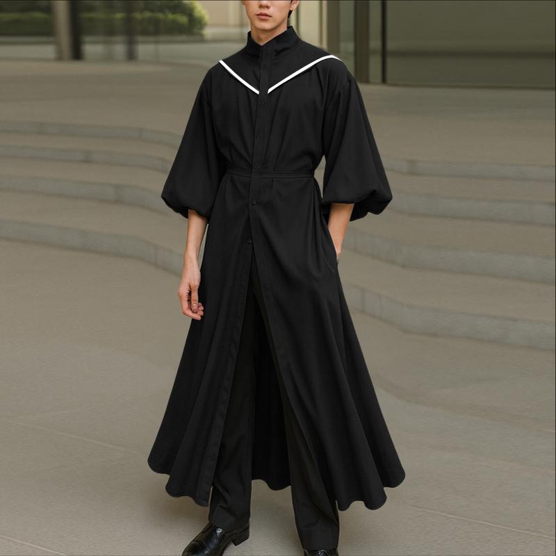INCERUN Men Stand Neck Long Sleeve Button Up Casual Pleated Long Shirts Tops
