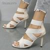 Strappy Stiletto Heels for Women Open Toe Elastic Band High Heel Sandals Back Zipper Fashion Party Nightclub Dress Shoes Ladies
