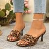Women Summer New Luxury Brand High Heel Sandals Versatile Simple Slim Heel Slippers Brown Leopard Party Walking Sandals