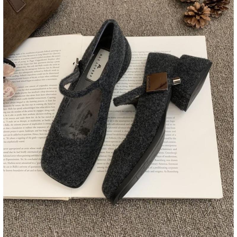 Winter New Korean Women Mary Jane Shoes French Luxury Retro Design High-heeled Plush Shoes Women's Chunky Heel Dress Shoes