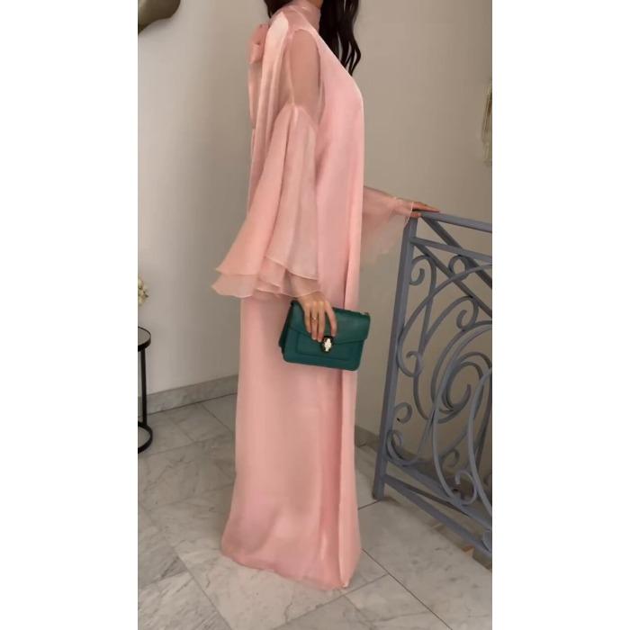 Middle East Arabian Women's New Temperament Stand-Up Collar Horn Sleeve Loose Large Size Dress Long Skirt