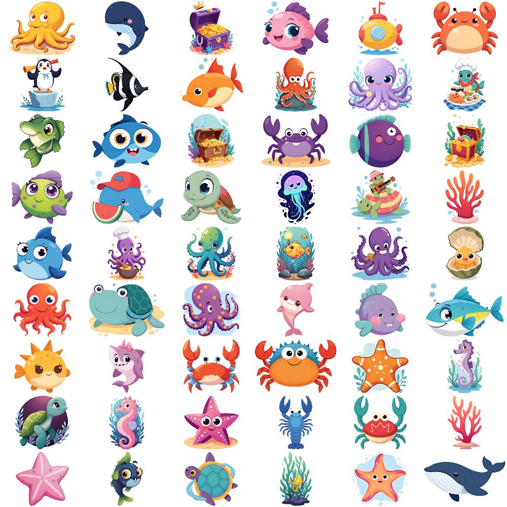 54pcs Temporary Tattoo Cartoon Creatures Temporary Tattoo Stickers Ocean Animals Waterproof Long-lasting Body Stickers For