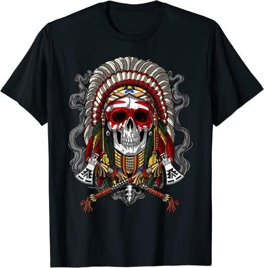 Native American Chief Skull Indian Headdress Design Gift Tee T-Shirt Unisex T-Shirt