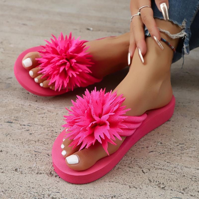 Chinelos de Flores Femininos Verão Novo Para Usar Fora Bico Redondo Bico Aberto Plataforma Leve Antiderrapante Versátil Chinelos