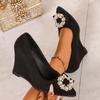 New Autumn Wedge Heel Shoes with Pointed Rhinestones and Square Buckle, Slip-on, Non-slip and Wear-resistant Low-top Shoes