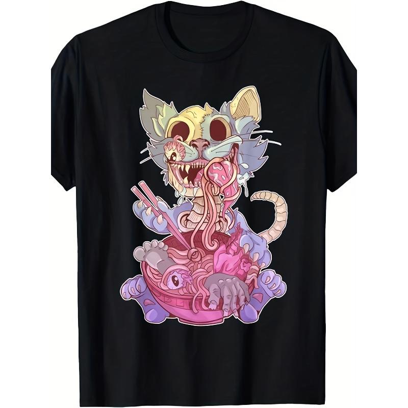 European sizes Men'S Goth Kawaii Cat Graphic T-Shirt - Anime-Inspired Graphic Tee with Lovely Pattern Comfortable Casual Short Sleeve Shirt for Men
