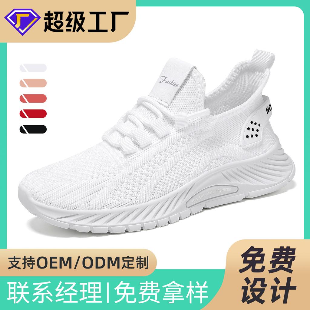 Shoe processing Spring large size sports shoes Flying woven running shoes Soft sole breathable single shoes Shallow mouth shoes