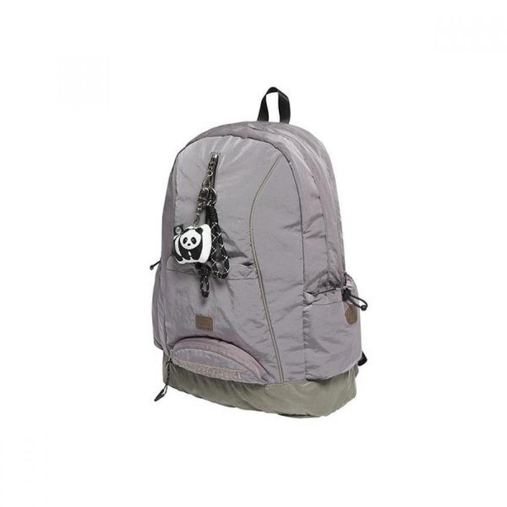 The Dual Effect Backpack (Purple) is designed as a color-block lightweight backpack. It features metal zipper points and a bottom treated with tone-and-mix color blocks, adding a natural color point to the product. Emphasizing its lightweight nature, it includes a string adjustment feature on the front pocket to enhance storage capacity.