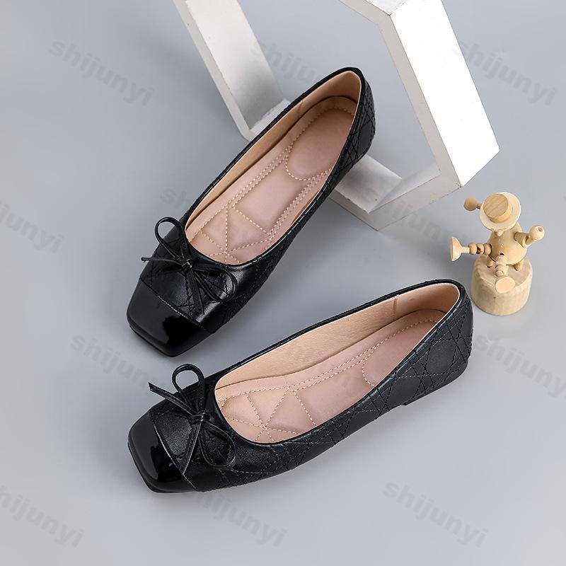 Women Ballet Flats 2026 Autumn Bowknot Square Toe Design Mary Jane Shoes Elegant Soft Sole High Quality Comfortable Single Shoes