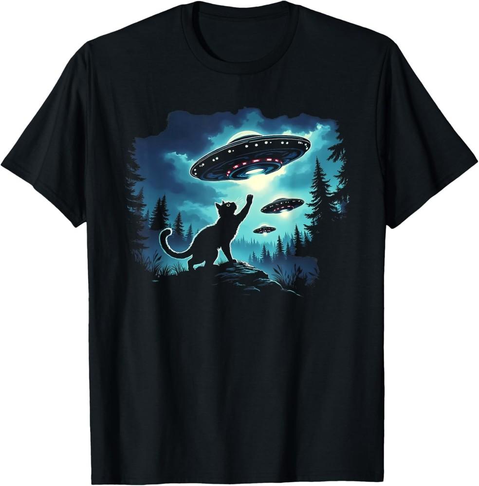 Alien Cat Playing With Ufo T-Shirt Unisex T-Shirt