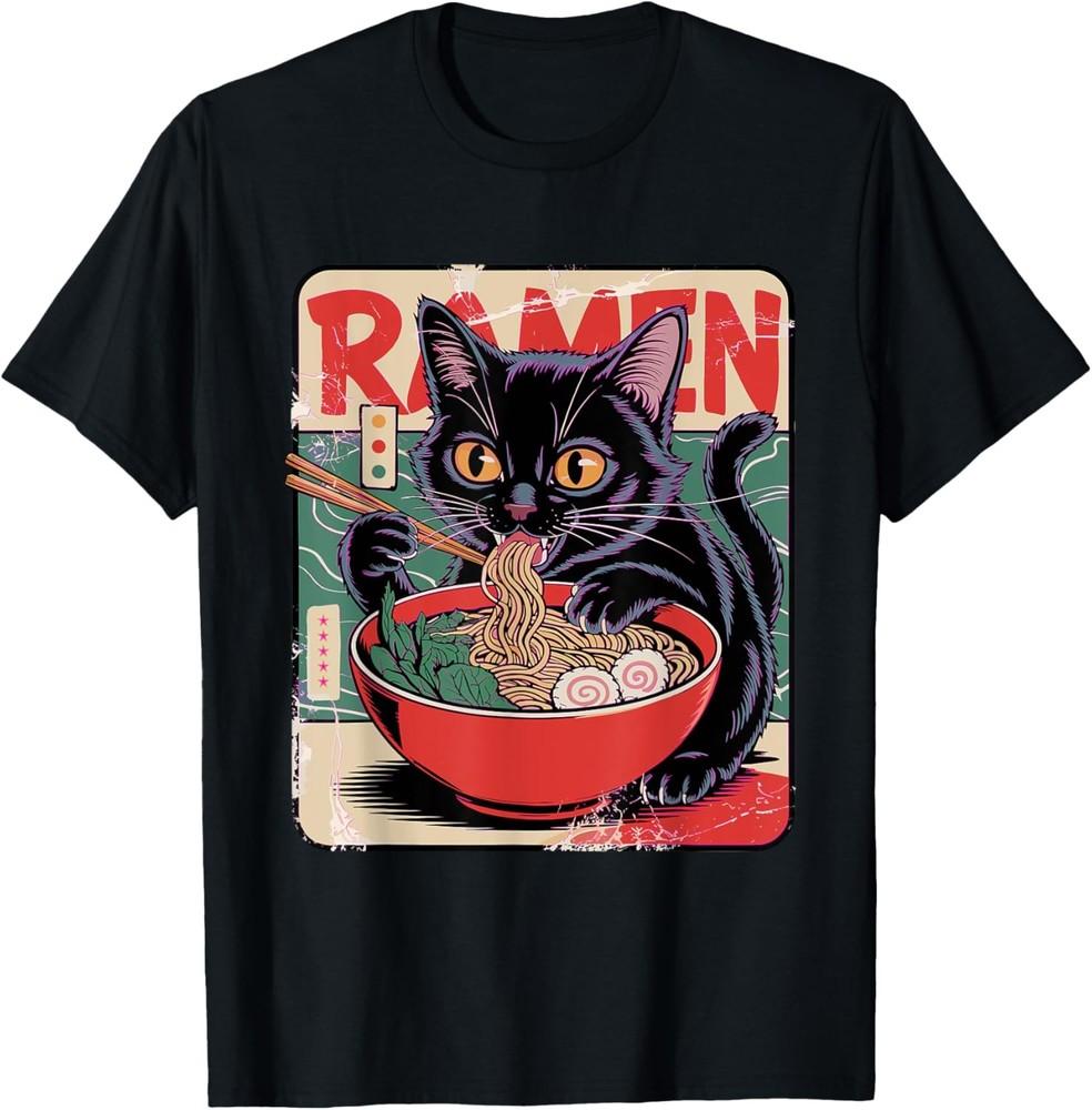 Cat Ramen Anime Design For Women Men Kids Adults Funny Cat T-Shirt Unisex T-Shirt