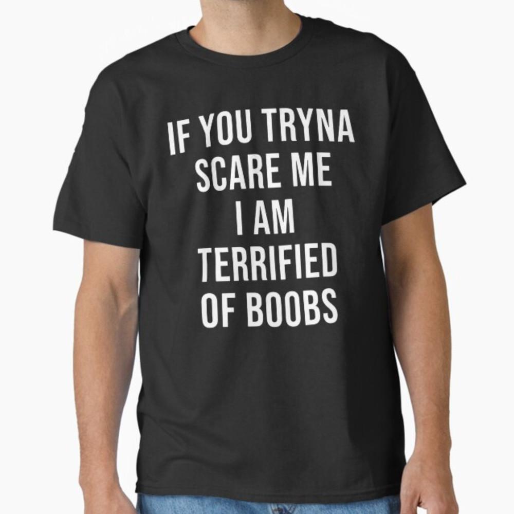 IF YOU'RE TRYING TO SCARE ME, I'M TERRIFIED OF BOOBS. ADULT T-Shirt Unisex T-Shirt