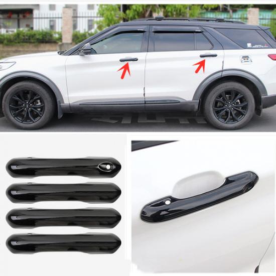 Glossy Black 4X Exterior Door Handle Cover Trim For Ford Explorer 2020-2024