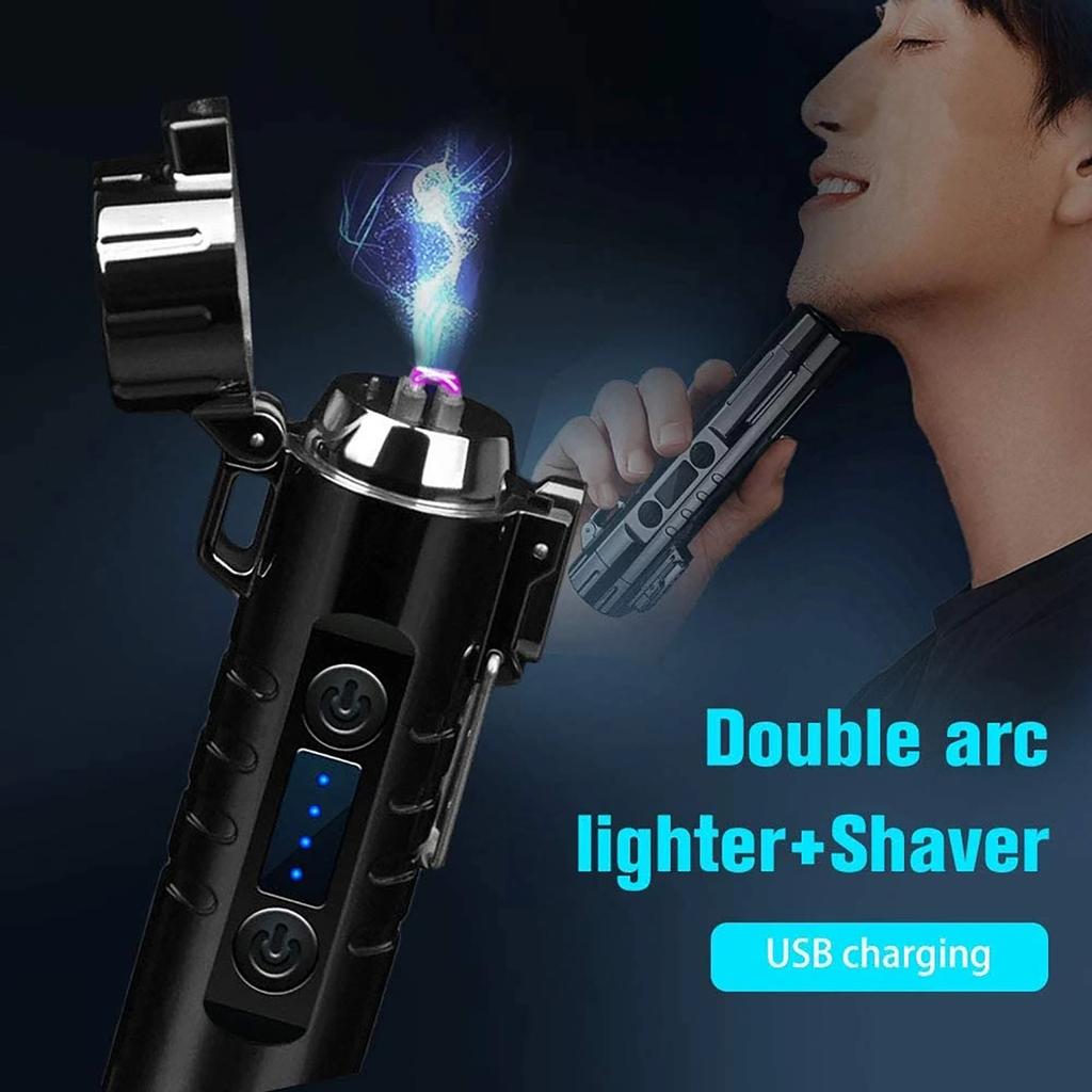 USB Electric Lighter with Beard Shaver Windproof Plasma Gifts For Men