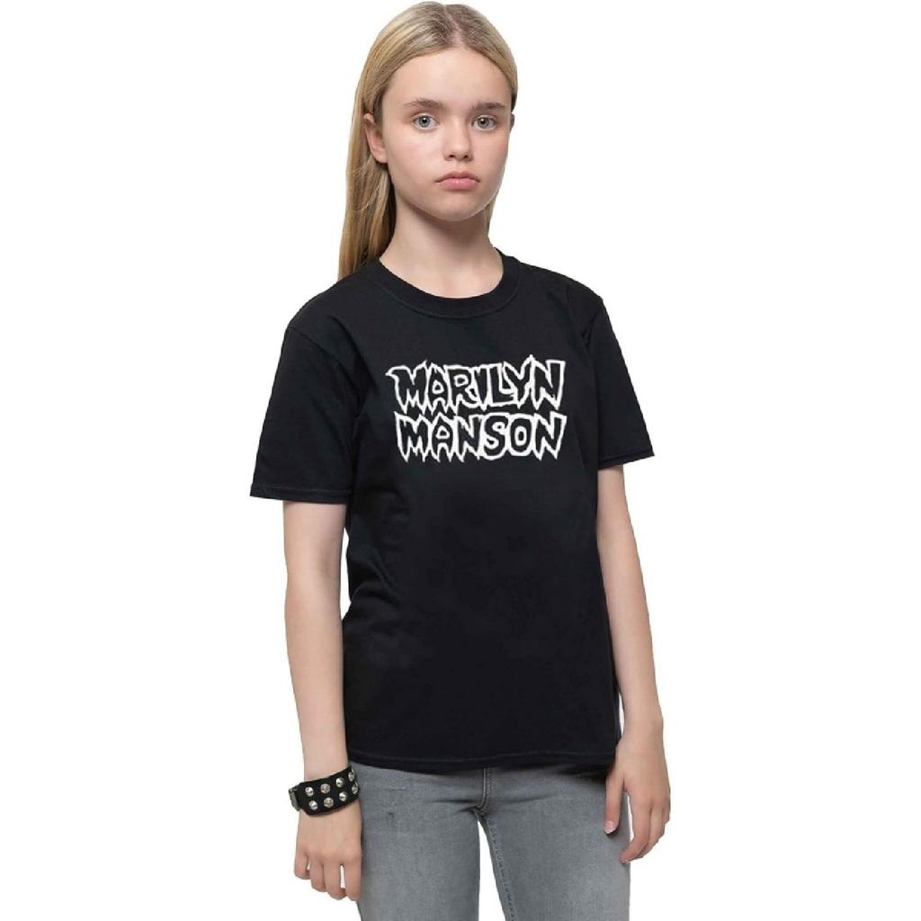 Rock Off Marilyn Manson Kids T Shirt Classic Logo New Official Black Ages 5-14 Yrs Size s